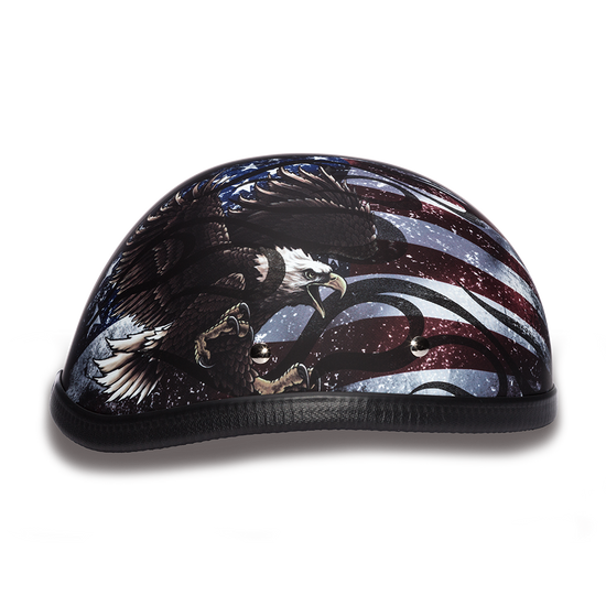 Our Premium Classic Eagle Novelty Item With Flames USA Graphic Does Not Meet D.O.T. Standards. The Eagle Novelty Item With Flames USA Graphic Is Fully Lined With A Custom Formed Interior For X-treme Comfort. Each Graphic Item Is Custom Designed And May Vary In Color Or Composition. This Eagle Graphic Novelty Item Has A Soft Touch Dull Black Finish, Available Without Snaps/Visor Only. Free Head Wrap And Cloth Draw String Bag Included.
