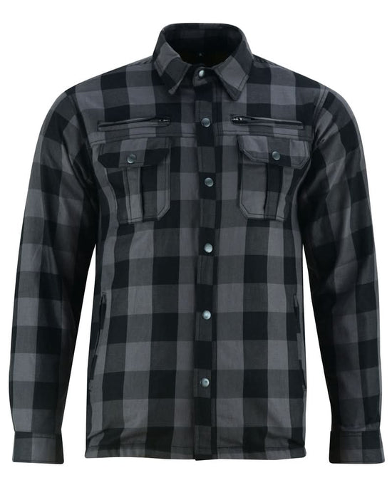 Alpha Check Men's Armored Motorcycle Flannel Shirt - Gray/Black