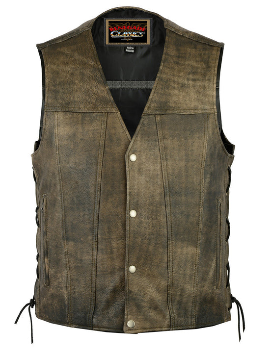 Order your men's brown side lace concealed carry biker vest today from Renegade Classics and receive free shipping on qualifying orders and a 30-day money-back guarantee. We offer free lifetime warranties on all orders. Shop today to find the next addition to your gear collection!