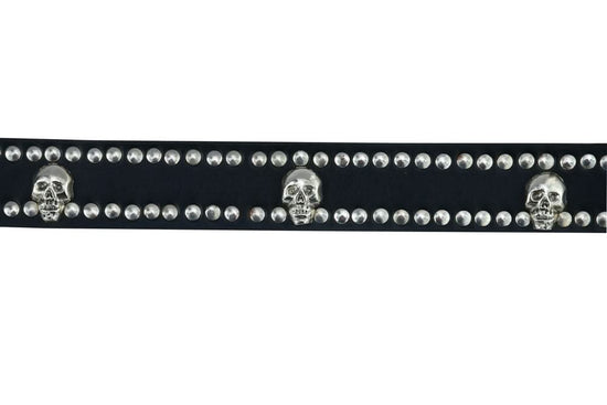 BLT Black Leather Belt with Silver Studs and Skulls