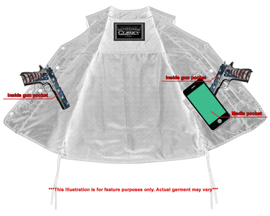 If you carry your guns wherever you go, you need to keep them safe. This style of vest contains two pockets for concealed carry. You can store your firearms in the built-in holsters with snap closures and make sure they stay in place.