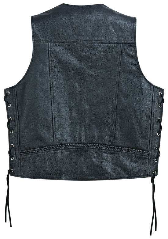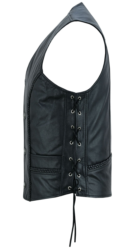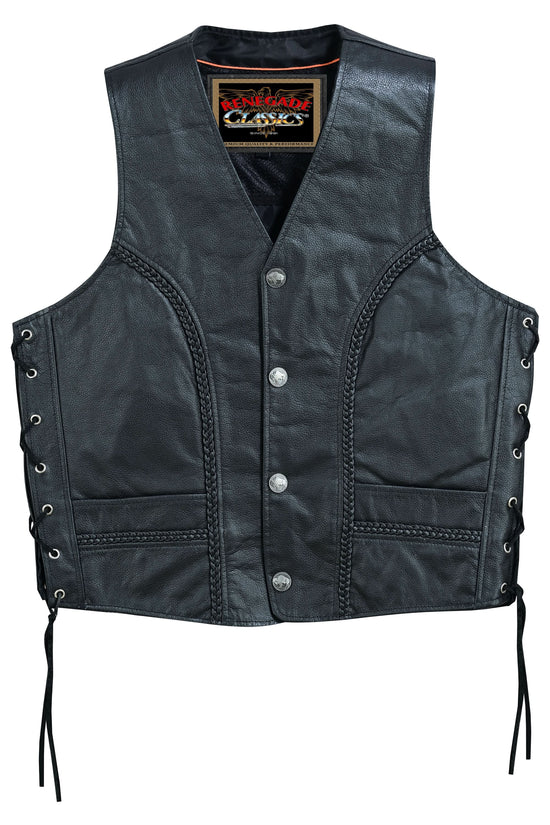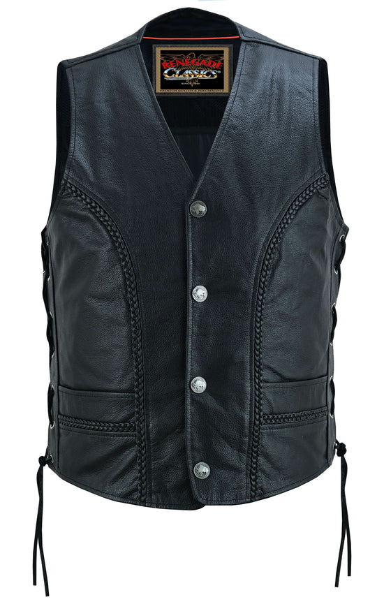 Charlie Men's Black Braided Leather Motorcycle Vest & Lace-Up Sides