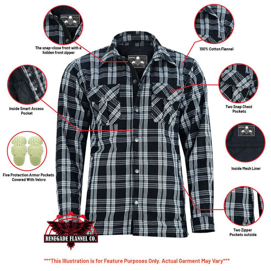 Crafted in the aspiration of freedom, this black armored flannel is perfect for casual outings, weekend getaways, or a night ride on an open road. It is the best and most popular choice for layering, offering a stylish and practical solution to staying warm and safe in lower temperatures. Whether you're out running errands or enjoying a peaceful day indoors, this flannel is a must-have for a touch of comfort and warmth.