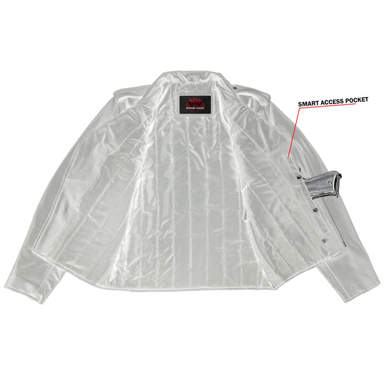 - 1 inside left-hand side concealed gun pocket made of special heavy-duty textile with built-in holsters and snap closure and 1 regular inside pocket.