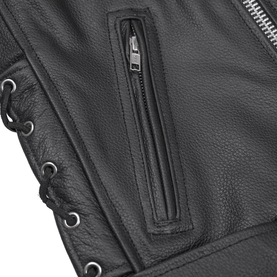 Classic Star Black Men's Leather Motorcycle Jacket – Adjustable Fit