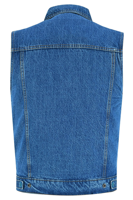 Blue Men's denim motorcycle vest with Snap/Zipper Front
