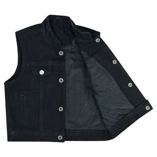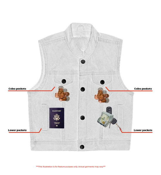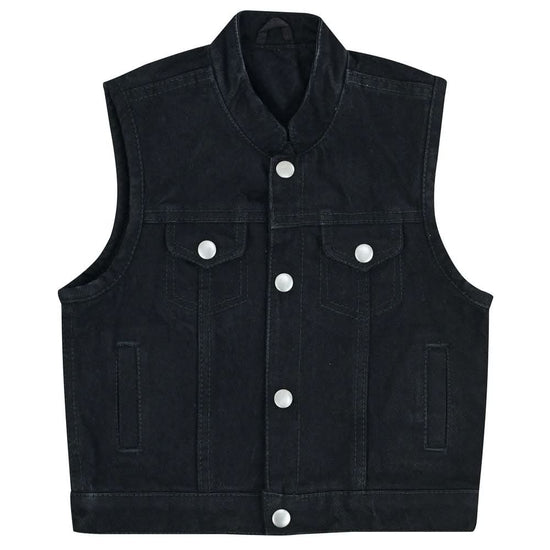 Enhance your kid's everyday style with this kid's premium denim vest, seamlessly combining durability and fashion. Its versatile design, featuring gunmetal snaps and ample storage pockets, ensures convenience and timeless style for any occasion.