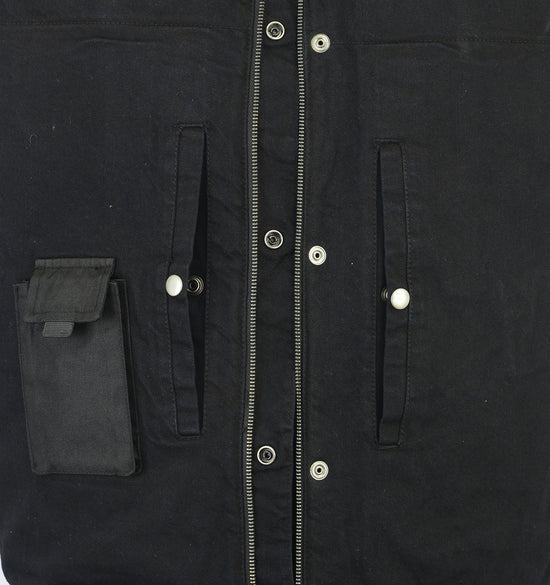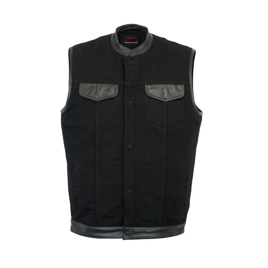 Men's Black Denim Single Panel Concealment Vest W/ Leather Trim