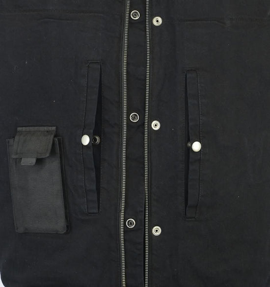 Men's Black Denim Single Panel Concealment Vest W/Leather Trim-