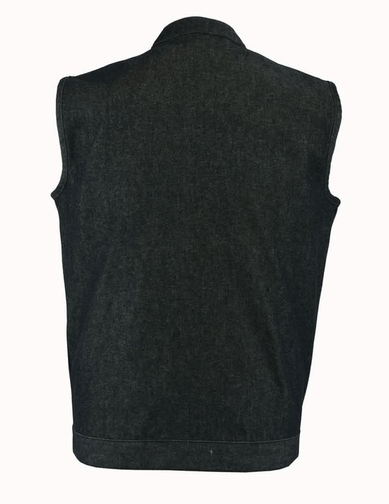 Men's Rough Rub-Off Raw Finish Motorcycle Denim Vest - Black