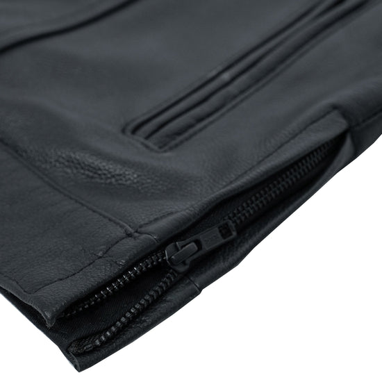 2 upgraded style concealed gun pockets between the snap and the zipper made of special heavy-duty textile with built-in holsters and snap closure.