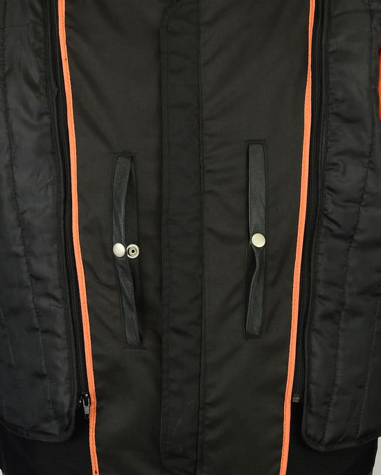 2 inside concealed gun pockets made of special heavy duty textile with built-in holsters and snap closure.