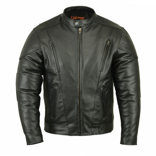 Men's Black Vented Motorcycle Jacket with Plain Sides