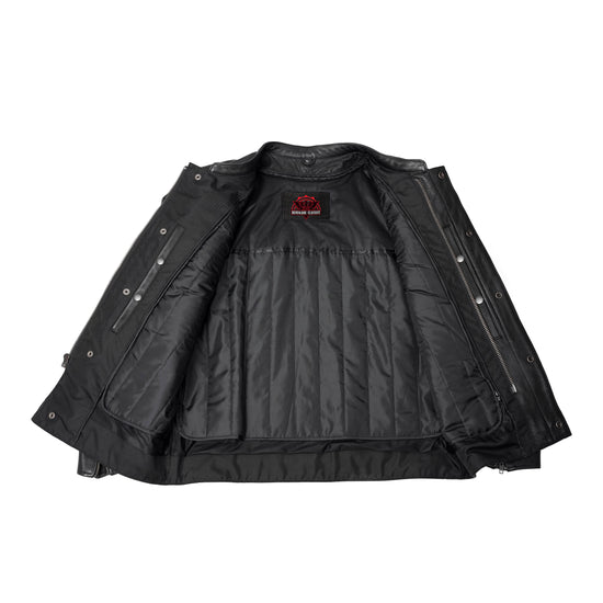 2 upgraded style concealed gun pockets between the snap and the zipper made of special heavy-duty textile with built-in holsters and snap closure.