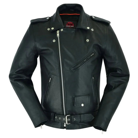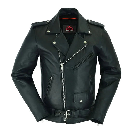 Men's Classic Plain Side Police Style M/C Jacket - TALL