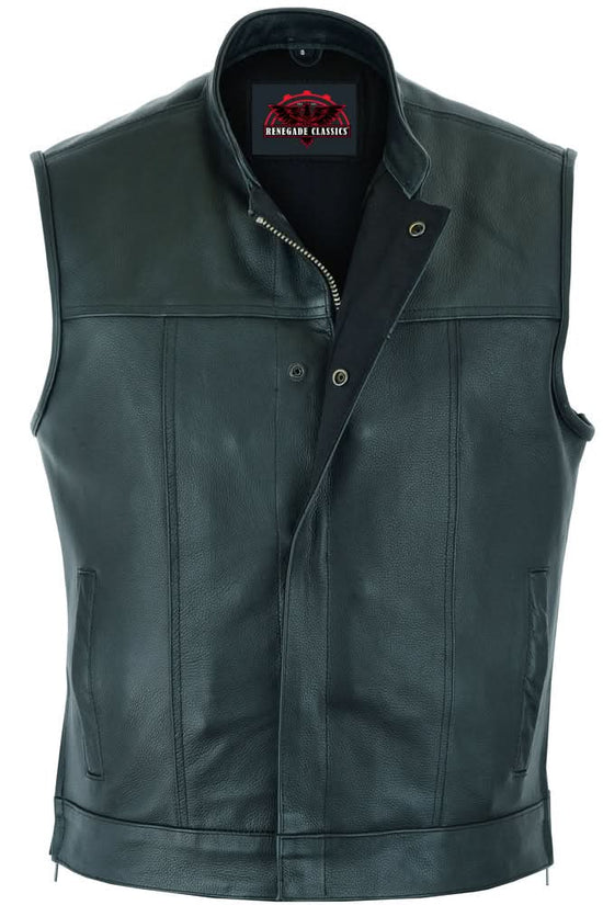 If you want a classic leather vest, our men's double-crosser biker vest with side zippers is an excellent choice.