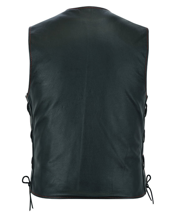 Men's Honor Ride Black Leather Motorcycle with Vest Red Stitching