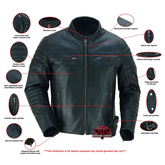 Men's Lightweight Drum Dyed Naked Lambskin Crossover Scooter - Black