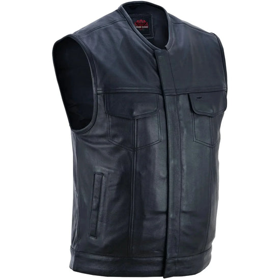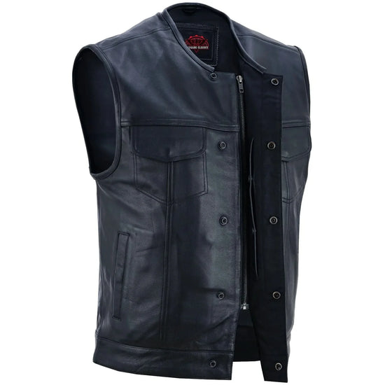 Men's Titan Black Leather Vest - Milled Cowhide, Hidden Zipper