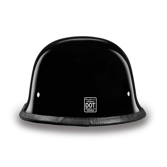Our D.O.T. Daytona German Helmet In The Hi-Gloss Black Finish, Meets And Exceeds D.O.T. FMVSS 218 Standards. It Is Also Available In Soft Touch Dull Black. Free Head Wrap And Cloth Draw String Bag Included. Sizes Range From XS-XL.