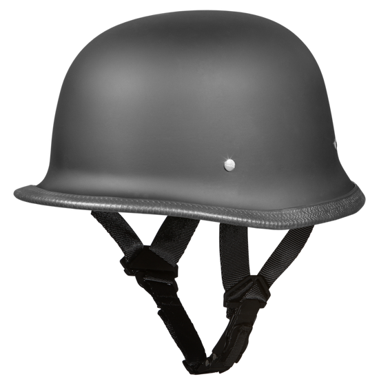 Our D.O.T. Daytona German Helmet In The Soft Touch Dull Black Finish, Meets And Exceeds D.O.T. FMVSS 218 Standards. It Is Also Available In Hi-Gloss Black. Free Head Wrap And Cloth Draw String Bag Included. Sizes Range From XS-XL.