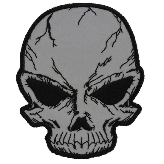 This is the small reflective version of the cracked skull patch designed by Arturo Vilmenay. The small skull patch measures 3x3.75 inches.