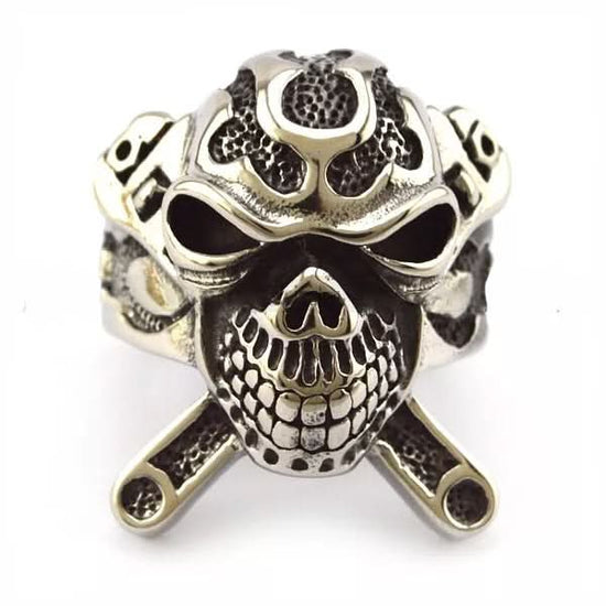 Stainless Steel X Skull Biker Ring