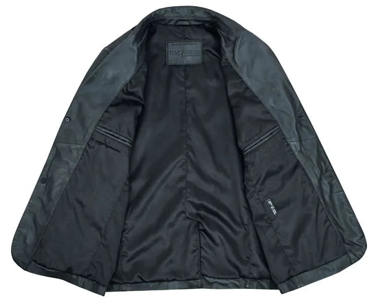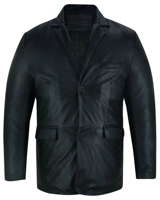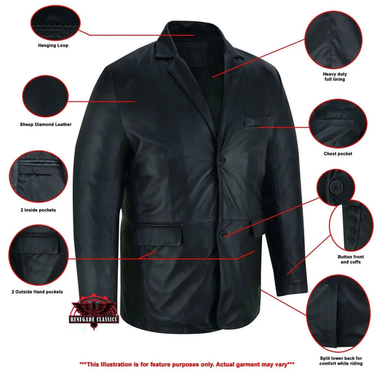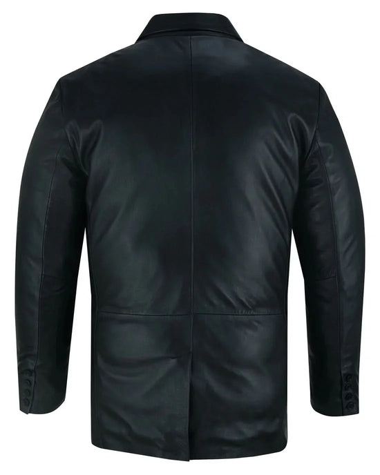 Retro Trim Men's Black Sheep Skin Leather Blazer