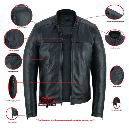 Wanton Men's Fashion Lambskin Leather Jacket –Black
