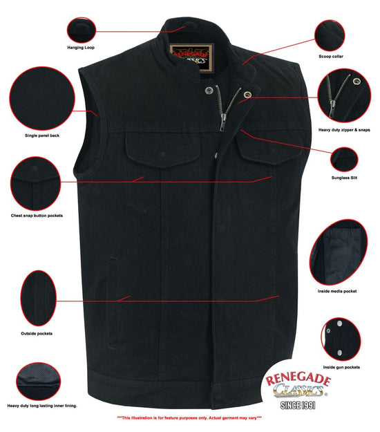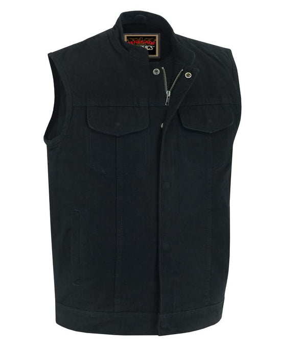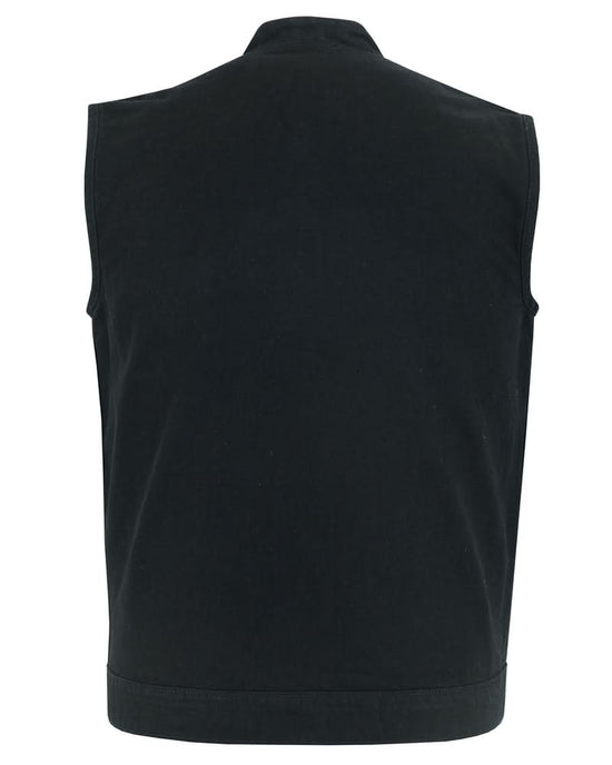 Weston Black Men's Denim Motorcycle Vest – Single Panel Back
