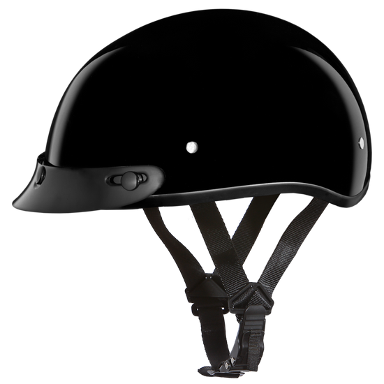 Our D.O.T. Daytona Slim Line Skull Cap 1/2 Shell Helmet In The Hi-Gloss Black Finish, Meets And Exceeds D.O.T. FMVSS 218 Standards And Is The Smallest D.O.T. 1/2 Shell Helmet Ever Made!! With 3 Different Shell Sizes, You're Sure To Get That Proportionate Fit!! Available With Or Without Removable, Snap On Gloss Black Mini Scoop Visor. Many More Colors And Designs Available. Free Head Wrap And Cloth Draw String Bag Included. Sizes Range From 3XS-4XL.