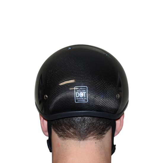 Our D.O.T. Daytona Slim Line Skull Cap 1/2 Shell Helmet In Carbon Fiber, Meets And Exceeds D.O.T. FMVSS 218 Standards And Is The Smallest D.O.T. 1/2 Shell Helmet Ever Made!! With 3 Different Shell Sizes, You're Sure To Get That Proportionate Fit!! Note The Quality In The Weaving Of The Carbon Fiber! Our Carbon Fiber Is The Real Thing!! With The Latest Technology, We Have Brought Our Carbon Fiber Standards Above And Beyond Our Own Expectations.