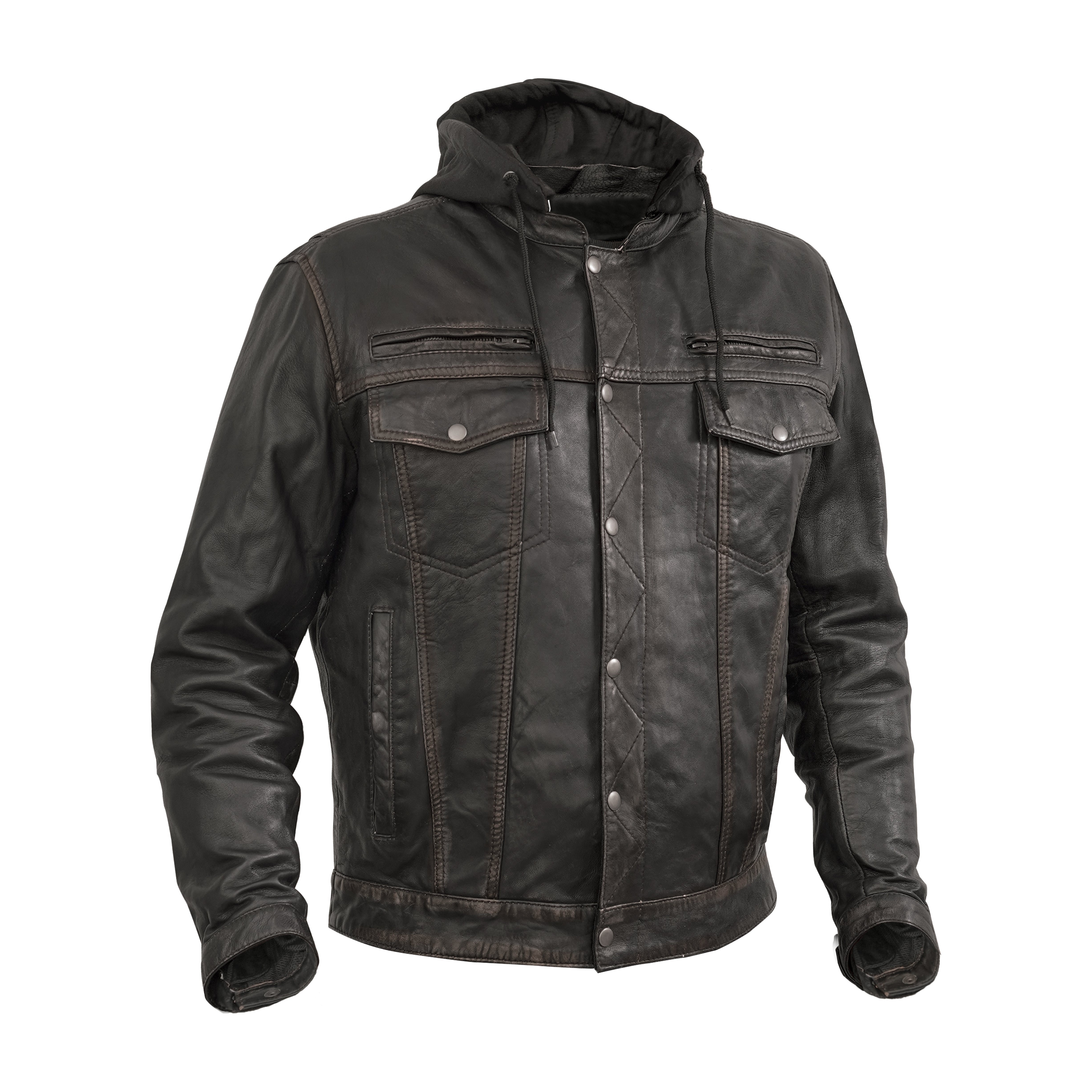 Front gun metal zipper hidden under snap-placket blocks wind & rain.