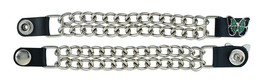 The vest extender also features a chrome motorcycle chain design, giving it a rugged and stylish look.